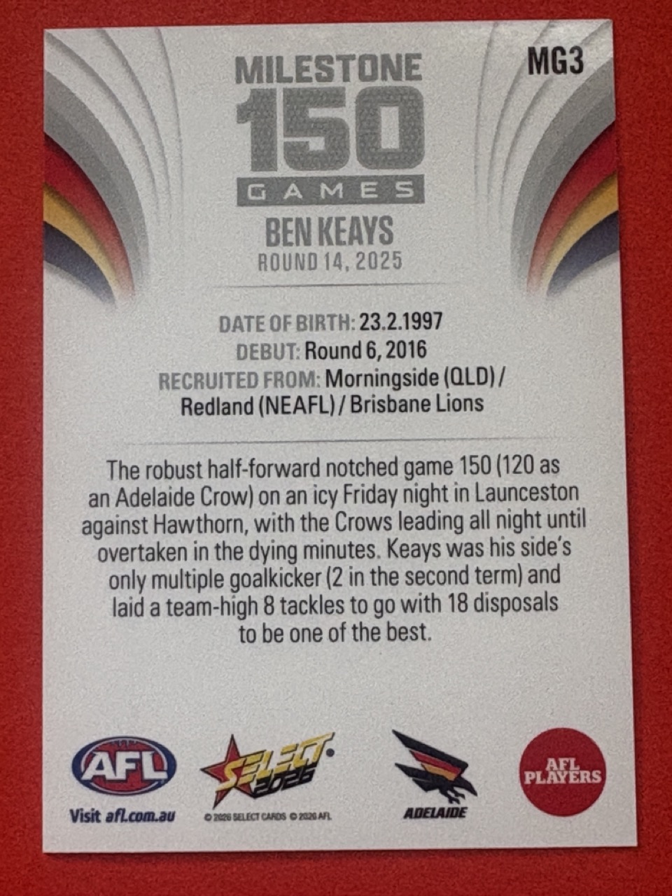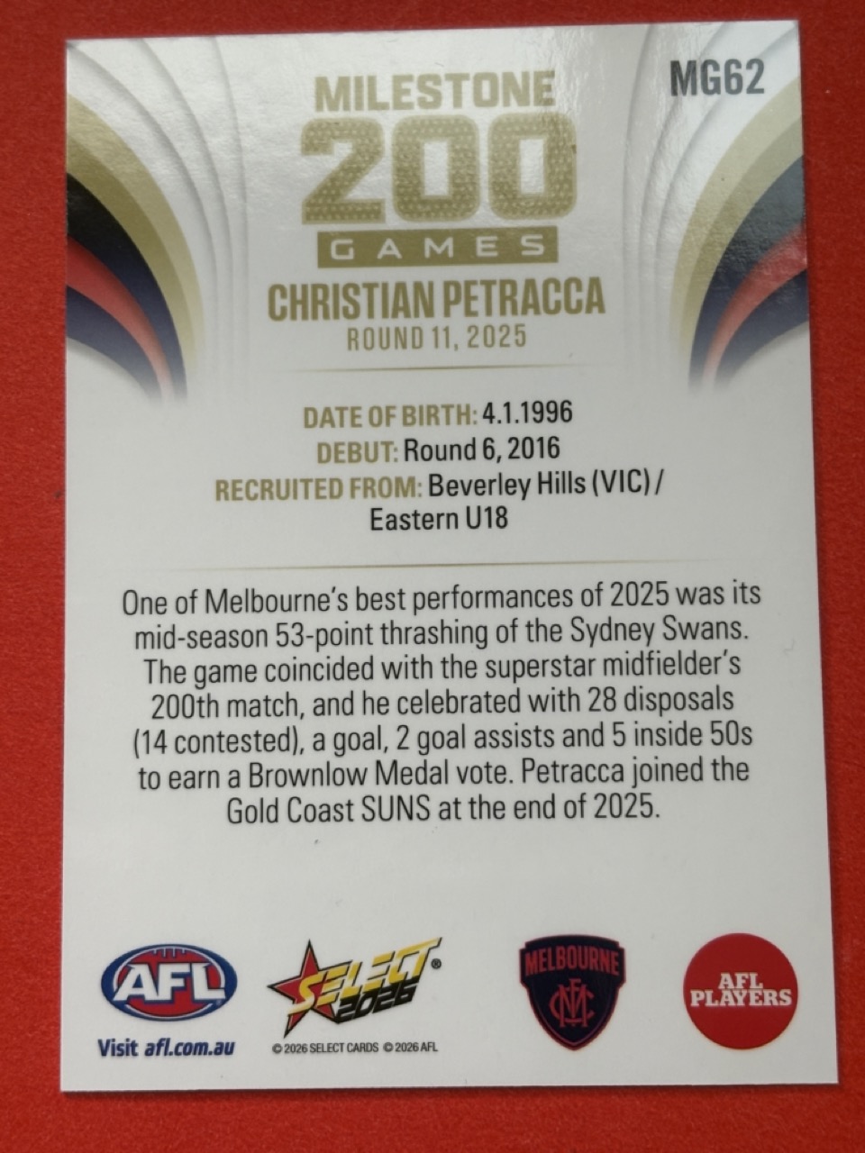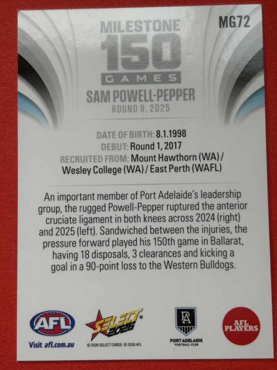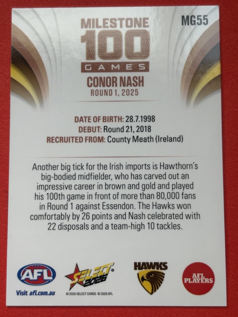 2026 AFL SELECT FOOTY STARS-MILESTONE GAMES-CHOOSE FROM DROPDOWN-SINGLE CARD-NM