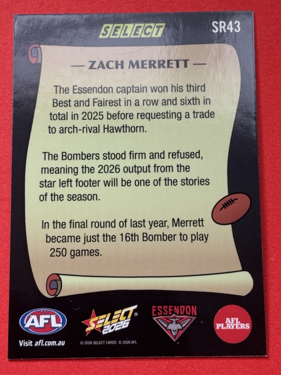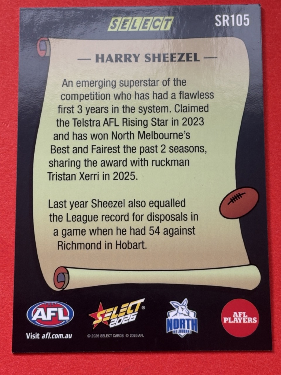 2026 AFL SELECT FOOTY STARS-SELECT REWIND-CHOOSE FROM DROPDOWN-SINGLE CARD-NM