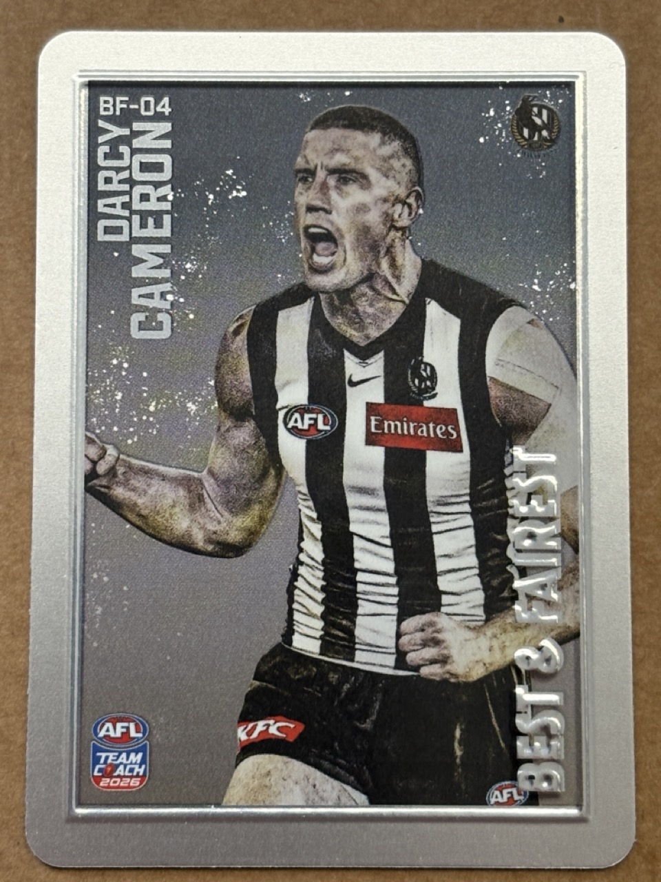 Explore the excitement of the 2026 AFL season with this Teamcoach Silver Best and Fairest sports trading card. Featuring a stunning base set design, this collector’s item showcases the talent and skill of some of the AFL’s most celebrated athletes. With a variety of players from the Essendon Bombers to the Western Bulldogs, there’s a card for every fan of Australian Rules Football. Choose from a dropdown menu to select your preferred player, and revel in the high-quality print and vibrant Silver Parallel/Variety that captures the spirit of the game. Whether you’re a seasoned collector or new to the hobby, this card is a must-have to celebrate your love for the Australian Football League.