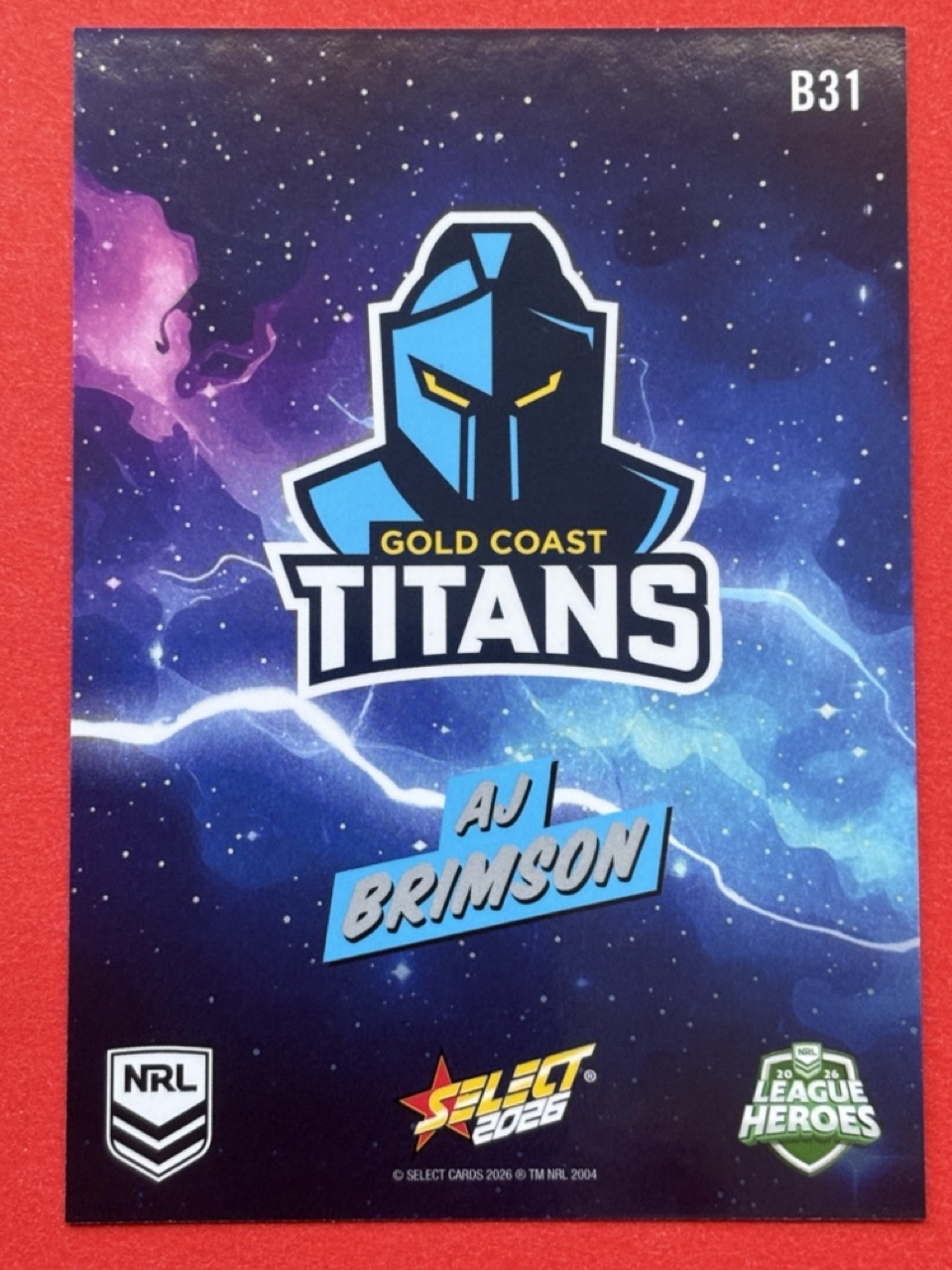 Dive into the excitement of the 2026 NRL season with our League Heroes Bang card, featuring some of the powerhouses of the NRL. Whether you’re a die-hard fan or a dedicated collector, this card is a must-have addition to your collection. Proudly showcasing the iconic team, this trading card is a tribute to the NRL’s elite rugby league athletes. Crafted by Select, a trusted manufacturer in the sporting memorabilia realm, this card comes from the 2026 NRL League Heroes set. It’s a unique piece that celebrates the sport’s top talent and their contribution to the Heros league. With the card presented in English and adhering to the standard card size, it’s perfect for display or safekeeping.