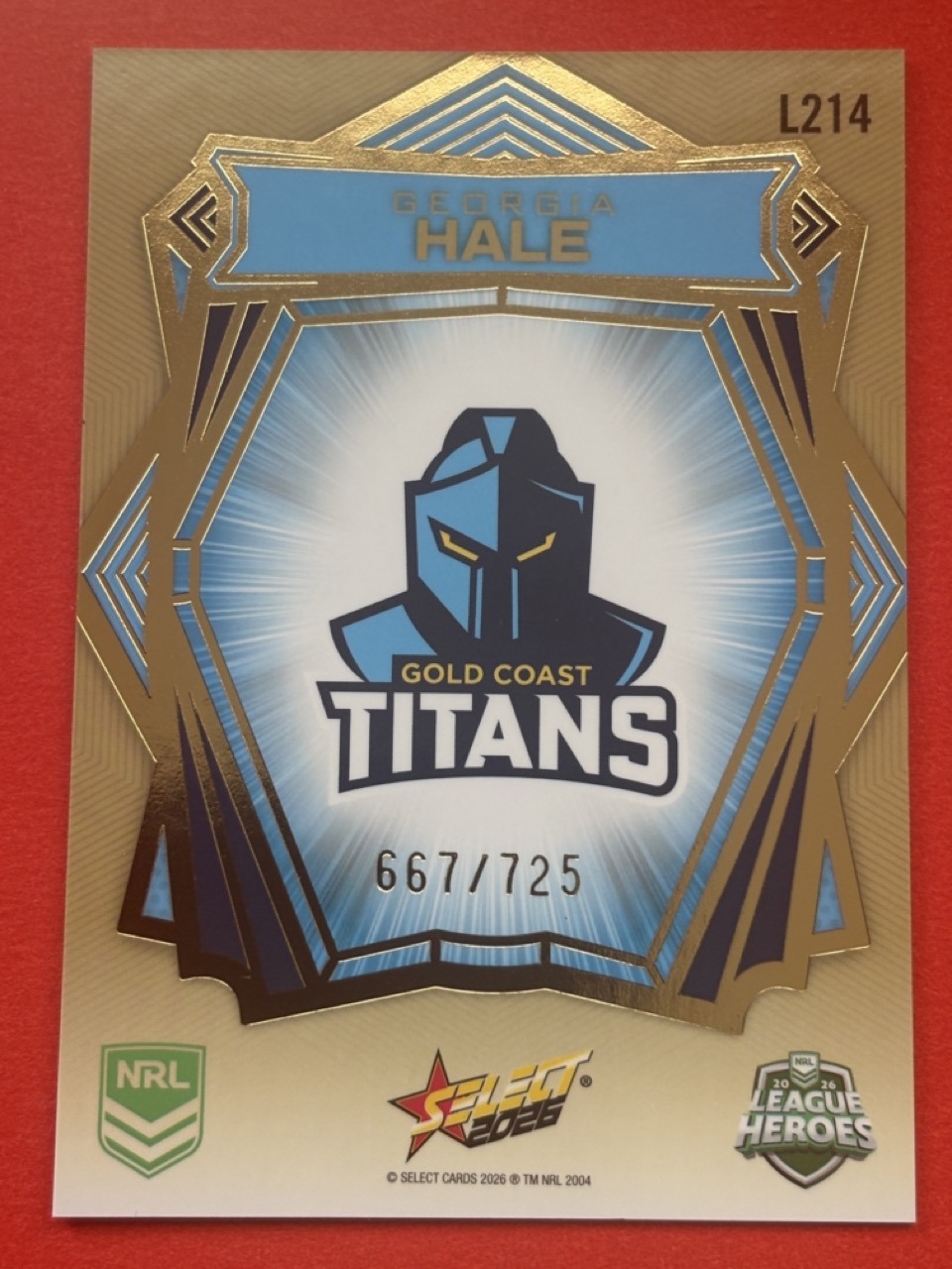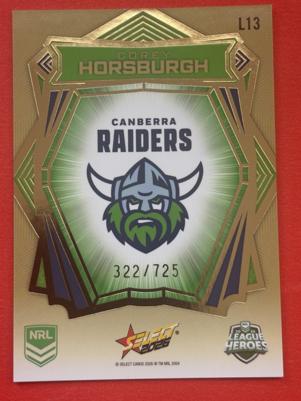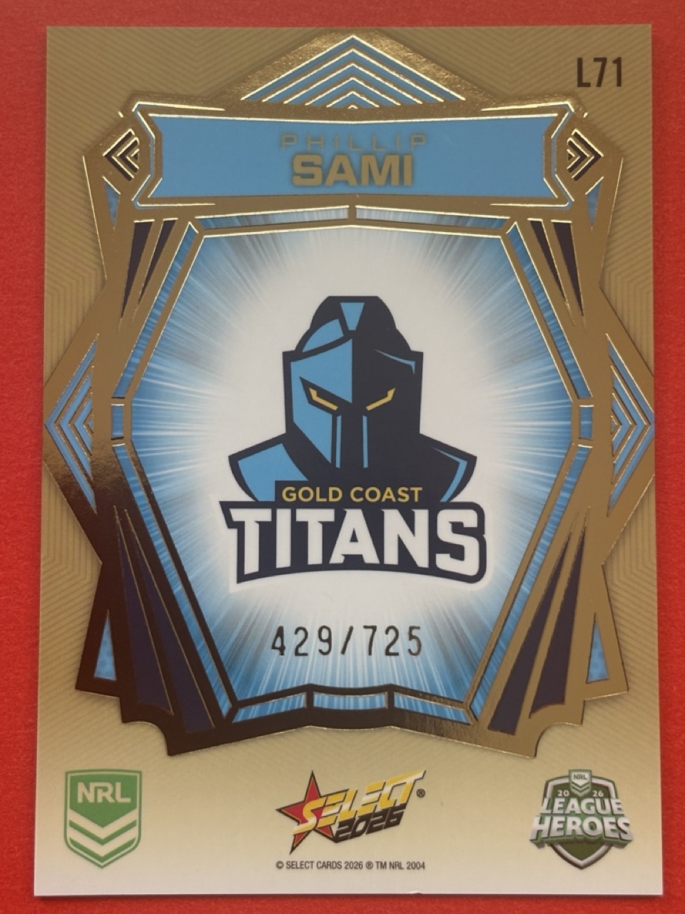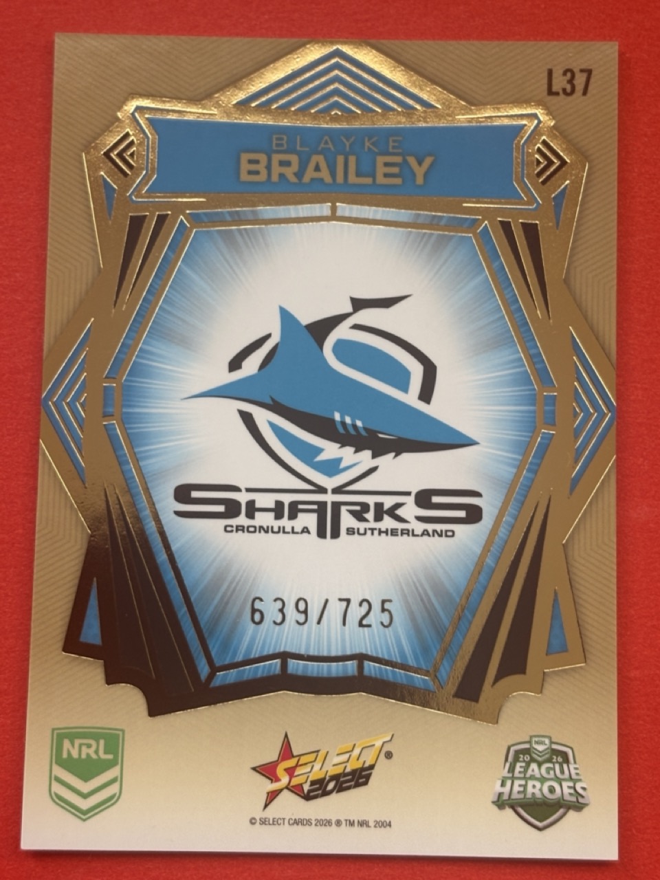 Elevate your NRL collection with the 2026 Select Hobby-Luminous Gold Back card, a must-have for enthusiasts and fans alike. Choose your desired card from the dropdown menu to capture a piece of the on-field action in brilliant, gold-toned glory. This modern-era card, featuring a limited print run of just 725, is a striking addition to any collection, boasting a serial number to ensure its uniqueness. Crafted with quality card stock and presented in English, this NRL-approved collectible is a true original, not a reprint, and comes as a single-insert product. The Luminoous Gold Back series by Select is renowned for its striking design and these cards are no exception, perfectly combining the thrill of the game with the joy of collecting.