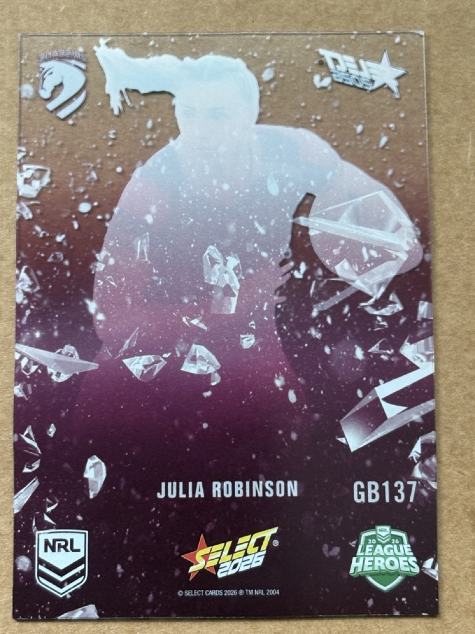 Experience the excitement of the NRL with the 2026 Select League Heroes Game Breakers card. This collectible is a must-have for any fan looking to capture the essence of the sport in a single, pristine card. Manufactured by Select, a trusted name in sports memorabilia, this item is a celebration of Australian rugby league at its finest. Choose your preferred hero from the dropdown menu, and add a piece of NRL history to your collection. Each card is meticulously crafted, highlighting the athleticism and skill that define the players. Whether you’re a seasoned collector or a new enthusiast, this card is an excellent way to show your support for the league and the heroes on the field.