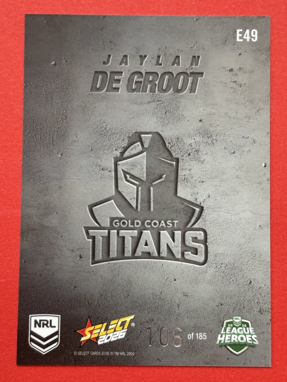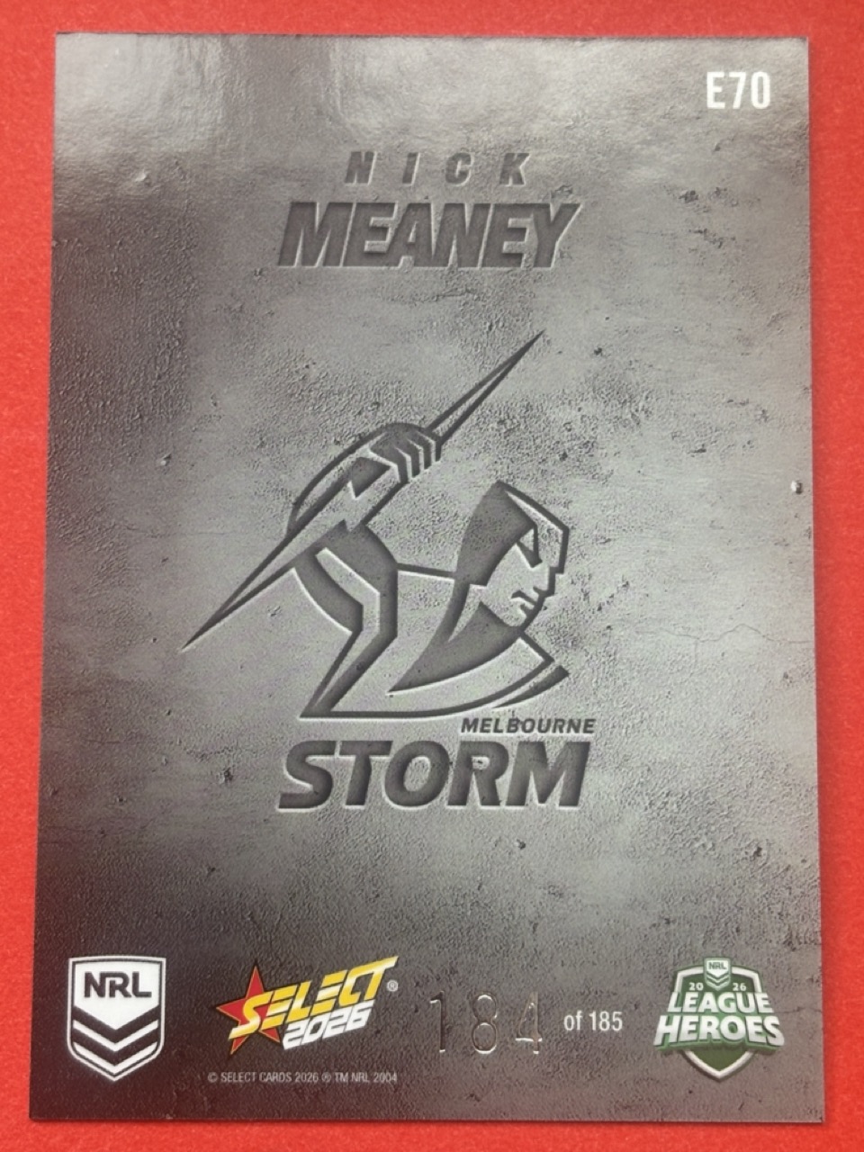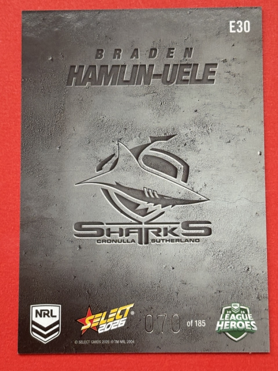 Dive into the electrifying world of NRL with the 2026 Select NRL League Heroes Etched-Chose from Dropdown List-Single Card. This premium sports trading card, produced by Select, captures the essence of the game’s most celebrated players and moments from the 2026 season. Whether you’re an avid collector or a fan of the sport, these cards are a must-have to commemorate the National Rugby League’s finest. Each card is a testament to the players’ prowess and an ode to the thrilling matches that define the NRL season. With a range of options to choose from, you can select the card that resonates with your passion for the sport or completes your collection. Add a touch of heroism to your collection with this exquisite piece of NRL memorabilia.