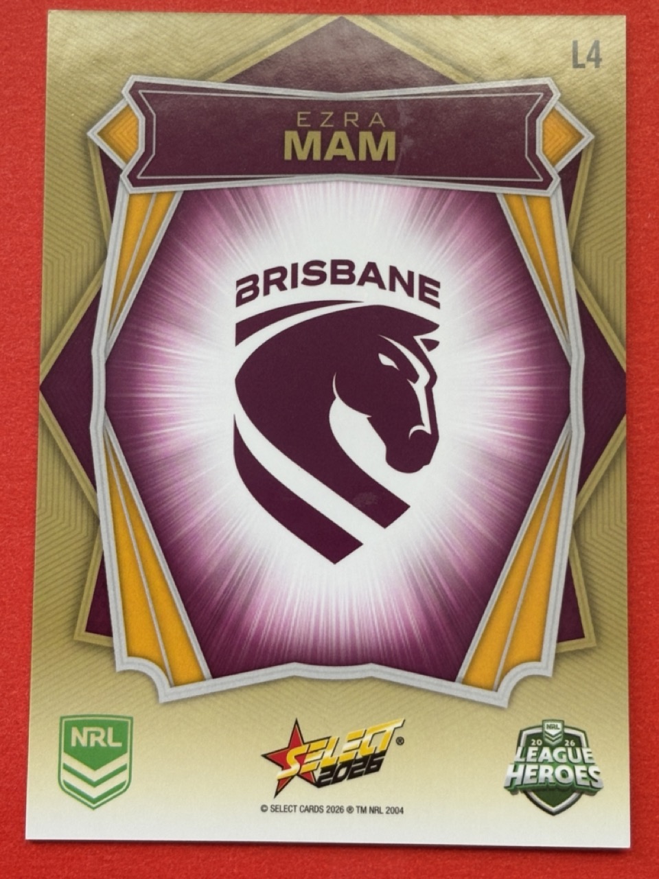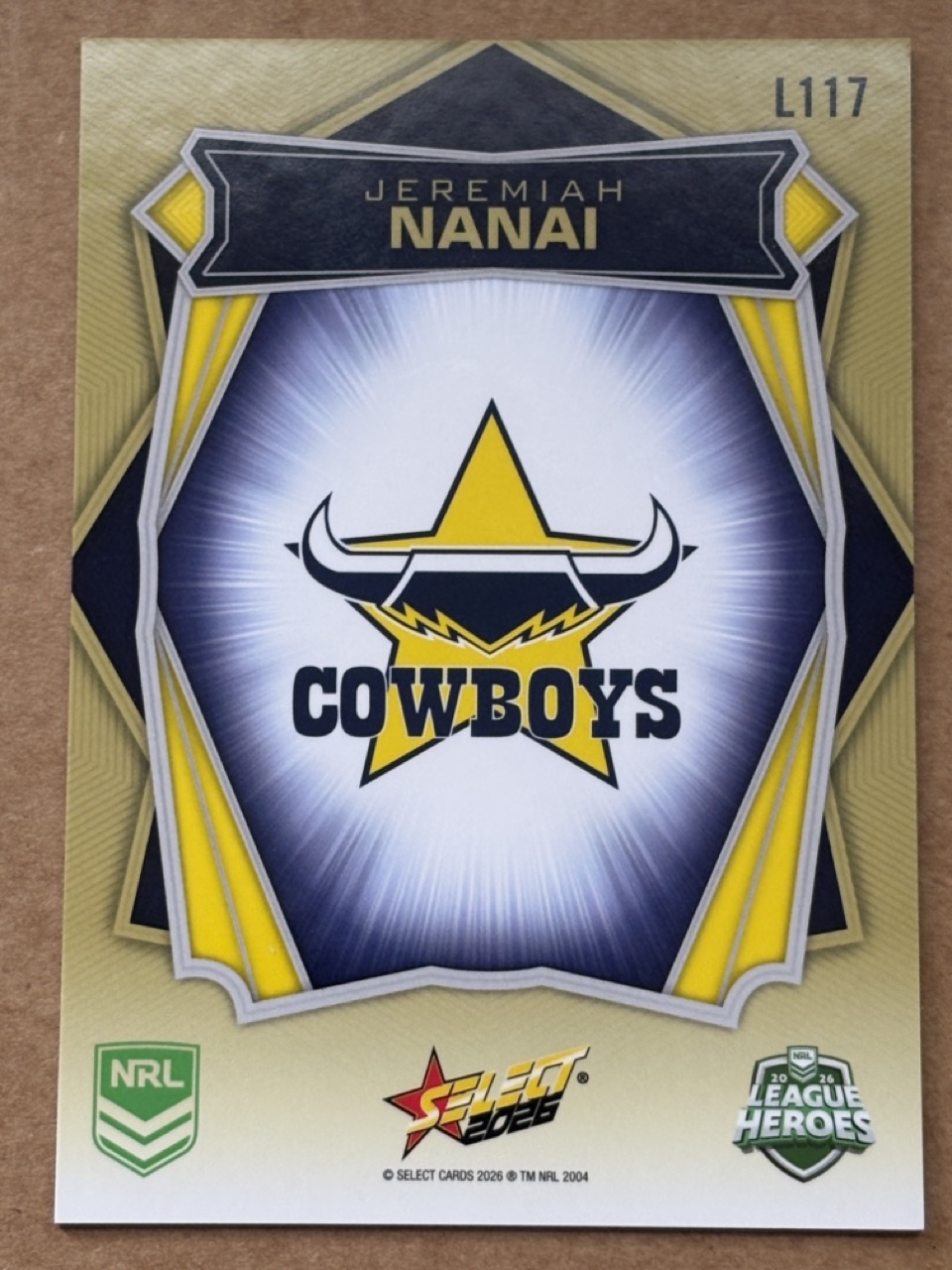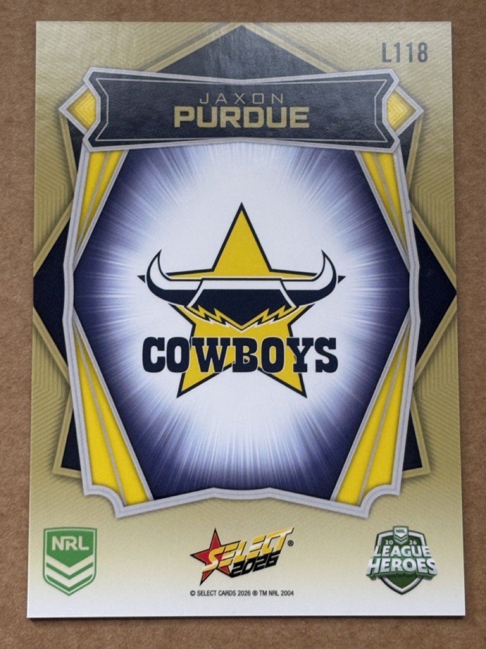 Dive into the excitement of the NRL with the 2026 Select NRL League Heroes-Luminous collection. Each card captures the essence of the game’s finest players, meticulously crafted by Select, a trusted name in sports memorabilia. With a range of luminous designs, these cards are a must-have for any passionate fan or discerning collector. Choose your next piece of memorabilia from the dropdown menu, featuring a selection of cards that celebrate the heroes of the league. These collector’s items, originating from Jordan, are a testament to the global reach and popularity of the NRL. Add a touch of brilliance to your collection with these striking NRL League Heroes.
