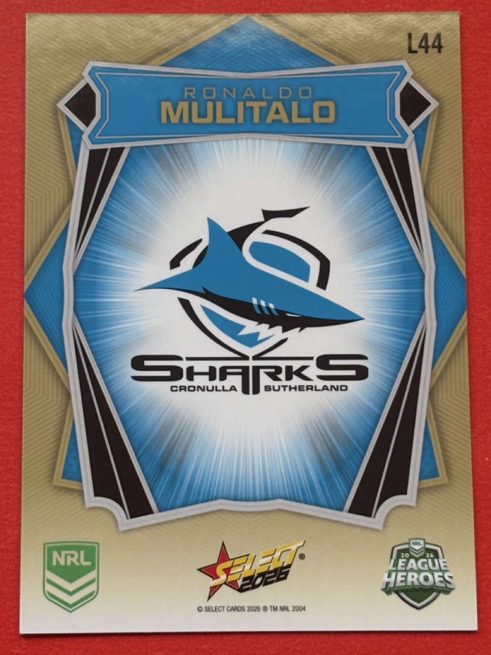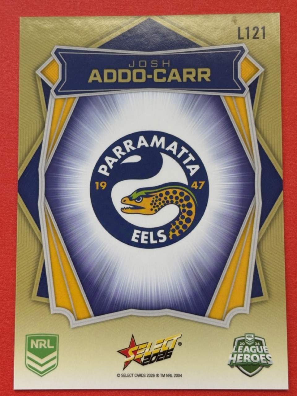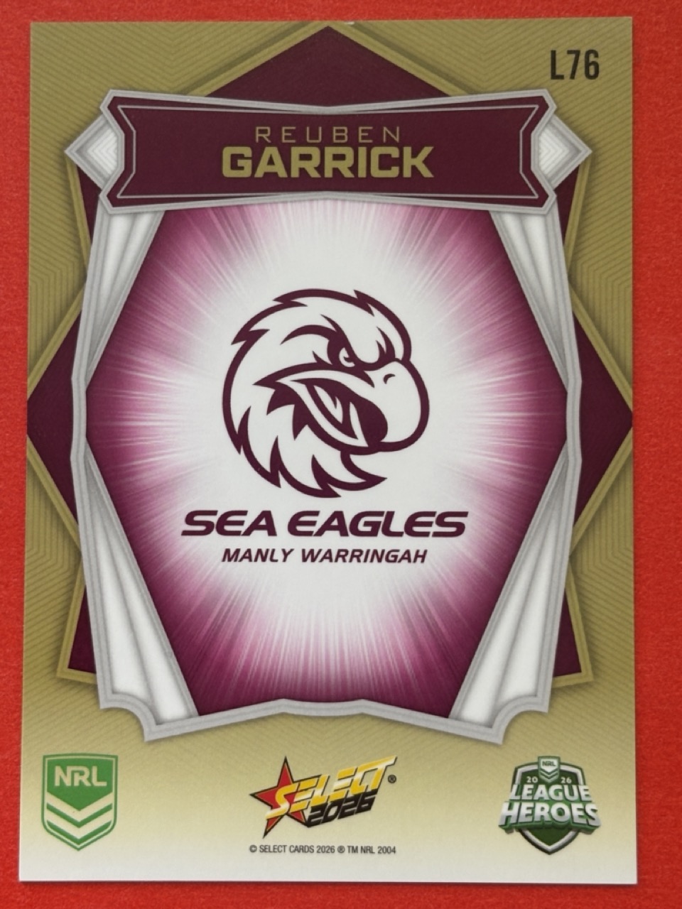 Dive into the excitement of the NRL with the 2026 Select NRL League Heroes-Luminous collection. Each card captures the essence of the game’s finest players, meticulously crafted by Select, a trusted name in sports memorabilia. With a range of luminous designs, these cards are a must-have for any passionate fan or discerning collector. Choose your next piece of memorabilia from the dropdown menu, featuring a selection of cards that celebrate the heroes of the league. These collector’s items, originating from Jordan, are a testament to the global reach and popularity of the NRL. Add a touch of brilliance to your collection with these striking NRL League Heroes.